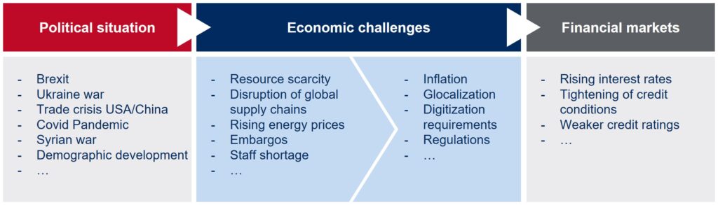 Political events and crises such as the war in Ukraine, the Covid pandemic or the Brexit continuously cause financial challenges for companies, such as cost and interest rate increases, which lead to uncertainties in corporate planning. This “perfect storm” to which companies and investors alike have been exposed for years, leads to changes in the financial markets.