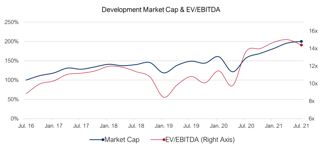At an average of 14.4x EBITDA, valuations are currently 25% higher than at the beginning of 2020.