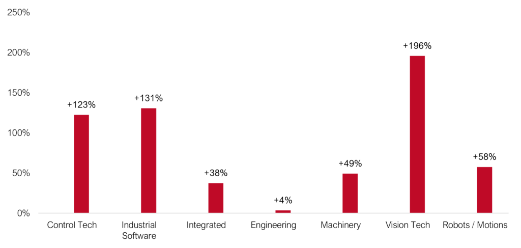 The Investec Industrial Technology Index tracks daily developments in sectors such as Control Tech, Industrial Software, Integrated Providers, Engineering, Machinery, Vision Tech & Robots/Motions.