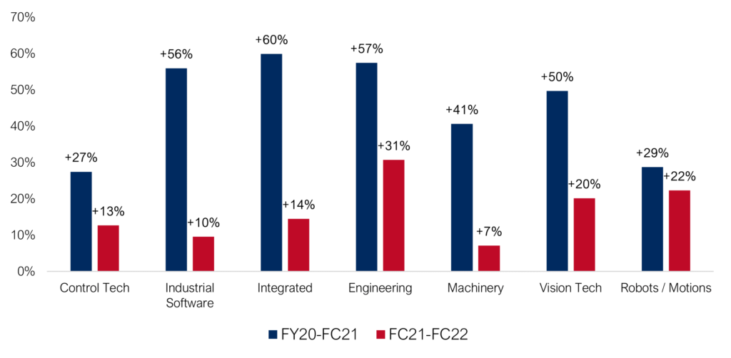 Following the demand, companies that offer integral total solutions with a focus on special applications or sector-agnostic applicable technologies profit.