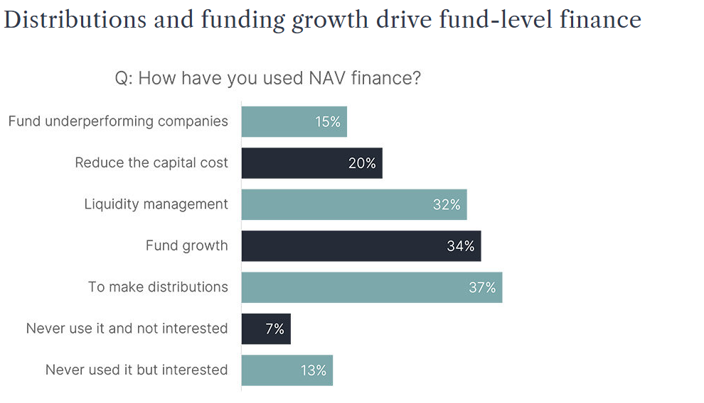 Four in five GPs said they used NAV finance in the last year, with distributions the most-cited use case (37%).