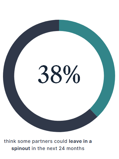 Indeed, 38% of GPs say some partners could leave their firm via a spinout in the next 24 months. This is reflective of a tougher fundraising environment, particularly for smaller managers with assets under management (AUM) below $1bn, where spinouts are more likely as junior partners explore other options when fundraisings stall.