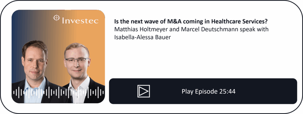 However, transactions in the healthcare sector have slowed significantly since the end of 2022. In this episode with Editor & Host Isabella-Alessa Bauer, Managing Partner Matthias Holtmeyer and Director Marcel Deutschmann from Investec Advisory explain the reasons for the slump and why the number of deals is now expected to rise again.