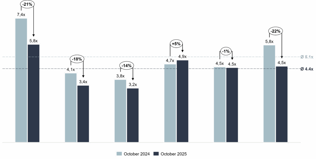 EV/Revenue: YoY comparison 10/2024 – 10/2025